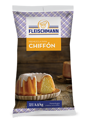 Premezcla para la elaboración de Torta Chiffon. Se obtienen tortas de excelente volumen, miga cerrada y pareja, y textura suave y húmeda.